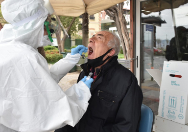 Dün öğle saatlerinde İl Sağlık Müdürlüğü'ne bağlı olan iki sağlık çalışanı, Karşıyaka İskele ve Osmanbey Parkı'nda vatandaşlara koronavirüs testi yaptı. Sosyal medyada yayınlanan görüntülerde sağlık çalışanlarının, sıraya giren vatandaşlarla ilgilendiği ve vatandaşların boğazlarıyla burunlarından örnek aldıkları, örnekleri deney tüplerine koydukları görüldü.