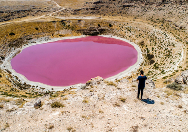 Konya'daki Meyil Obruk Gölü pembe renge dönüştü!