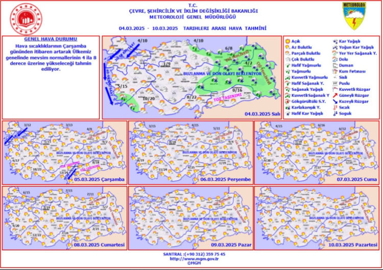 Hava sıcaklıkları Orta ve Doğu Karadeniz'in iç kesimleri ile İç Anadolu'da mevsim normallerinin 2 ila 4 derece üzerinde seyredecek.