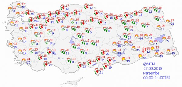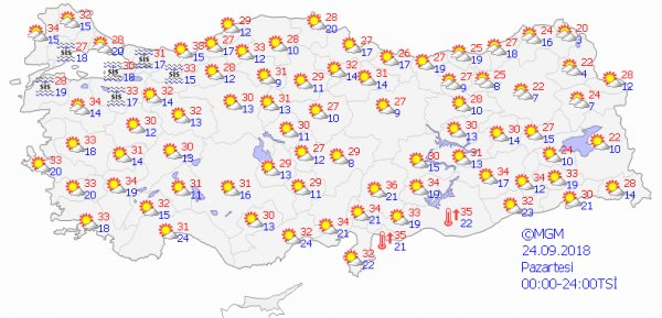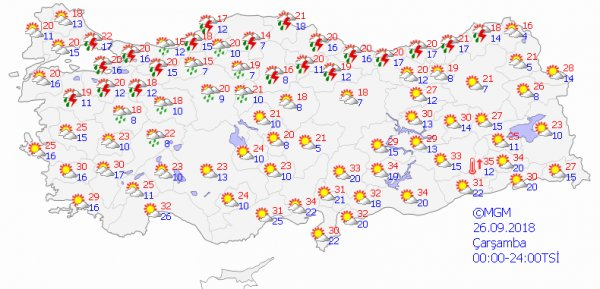 Meteoroloji tarafından yapılan son değerlendirmelere göre bugün güneşli bir hava Marmara ve çevresinde etkili olacak. Bazı illerde ise sağanak yağış etkili olacak. Başta Trabzon olmak üzere Rize, Artvin, Ardahan, Erzurum, Kars, Muş, Ağrı ve Iğdır'da bugün sağanak yağış etkili olacak.