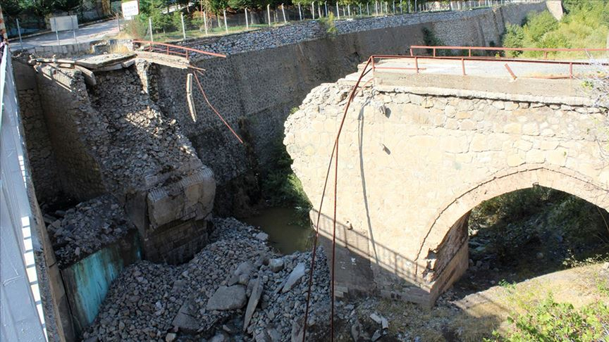 Doğal olmayan heyelan riski altında olan tarihi köprü son dönemde yağışların da etkisinden dolayı yıkıldı.