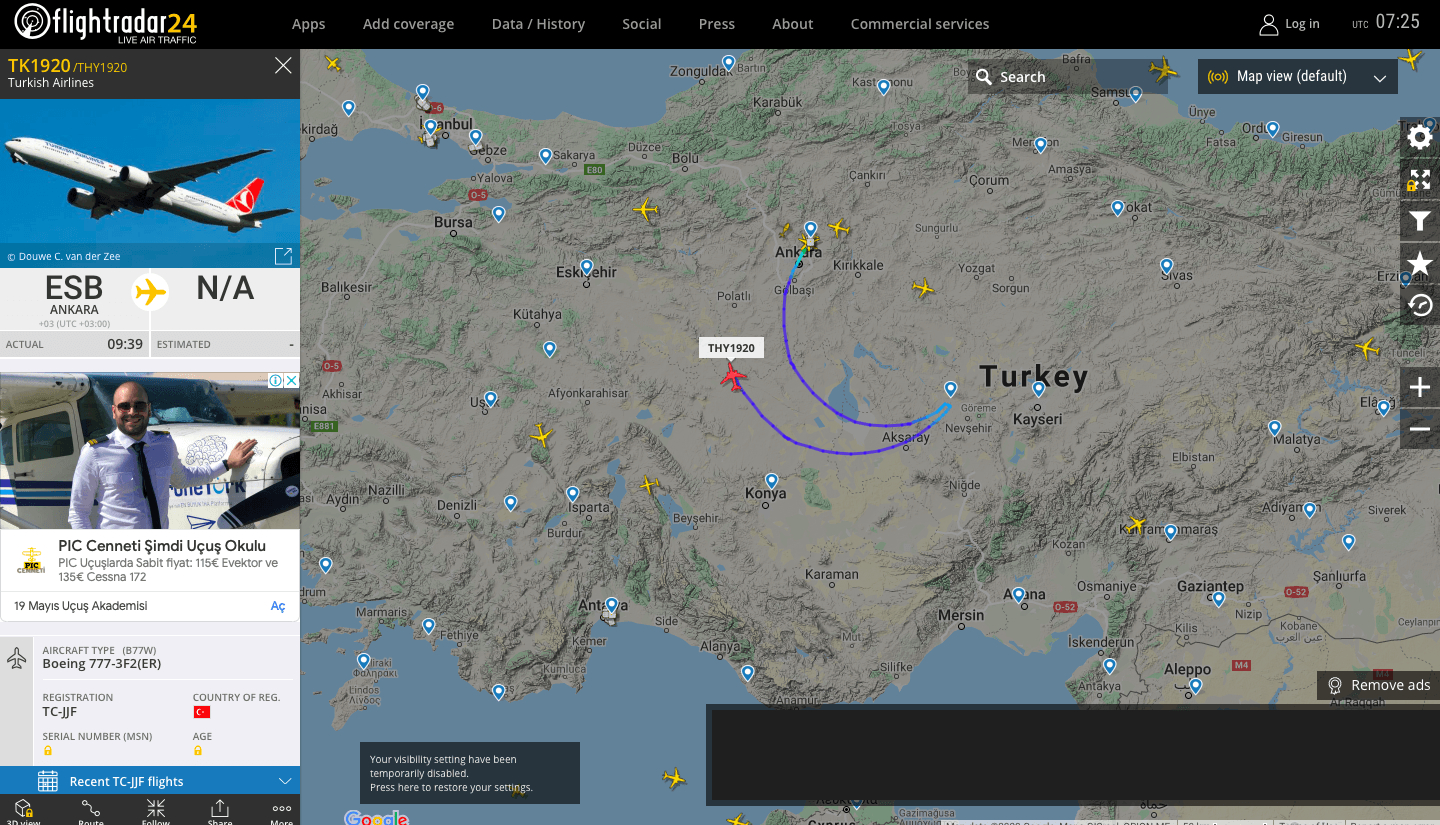 Gerçekleştirilen bu özel seferin, uçuş takip verilerinin bulunduğu canlı hava trafiği sitesi Flightradar24 üzerinden her anı takip edilebiliyor.