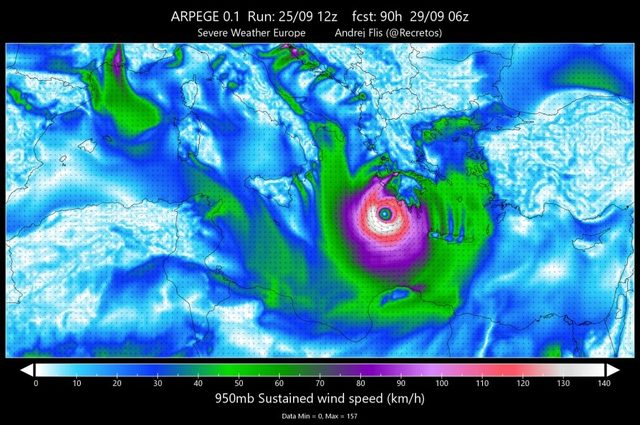Cumartesi günü Yunanistan'ın güneyine ulaşacak olan kasırga, eğer Yunanistan'da hiçbir kara parçasına yükünü boşaltmadan yurdumuz kıyılarına erişirse tehlike beklenenden daha büyük olabilir. Eğer kasırga Yunanistan'a yükünü boşaltmazsa beklenen rüzgarlarla beraber metrekareye 100 kilogram dolaylarında yağışı da getirecek.